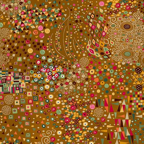 Golden est une superbe collection de tissus de Makower UK. Ces imprimés abstraits, inspirés du monde de Gustave Klimt, se déclinent dans des tons chauds et colorés, rehaussés d’accents métalliques dorés, donnant une note moderne et raffinée.